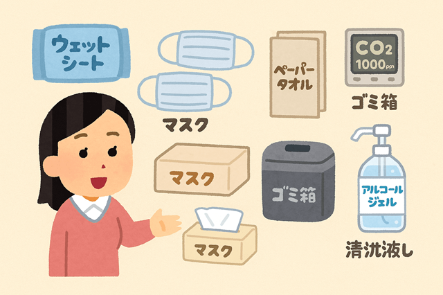除菌・防護・体調チェックの3つをそろえることで、毎日の衛生管理がぐっと楽になります。無理のない範囲でアイテムを揃え、安心できる職場環境を作りましょう。