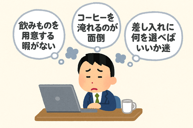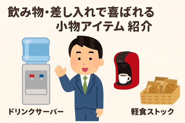 長時間の待機や休憩時間に「ちょっと一息つける場所」があると、スタッフのモチベーションが大きく変わります。今回は、事務所や待機スペースにあると喜ばれる飲み物・差し入れ系の便利アイテムを紹介します。